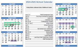 Trinity offers Early Enrichment, Preschool, and Pre-Kindergarten classes which provide a solid academic foundation built upon the Christian faith. We understand that you are looking for a loving environment; a place where you can bring your child so they will feel cherished and cared-for while you are away.